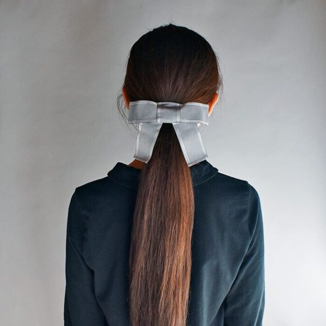白いダブルラインがポイントの光沢のある上質な生地です。