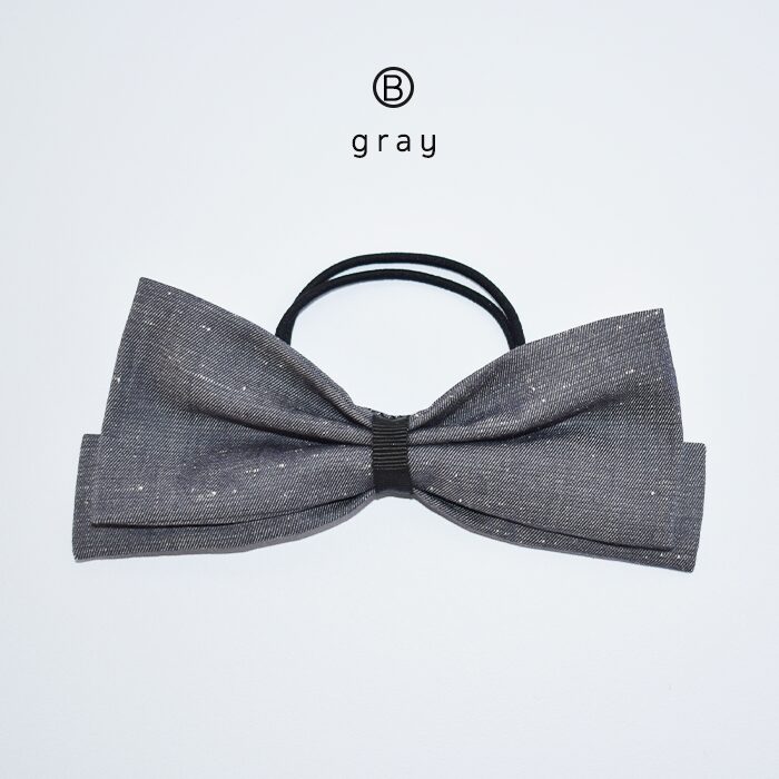 B  (gray)        :白い斑入りのグレーの生地に中央の黒いグログランリボンが上品な印象です。