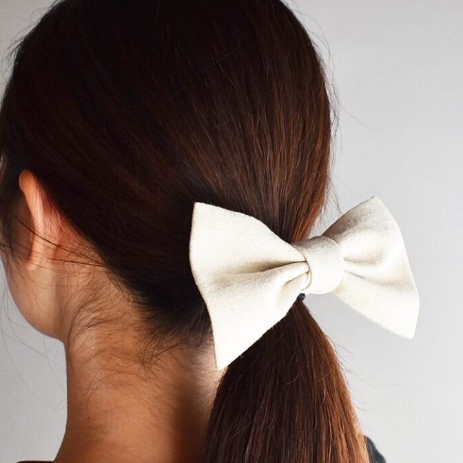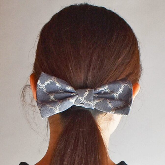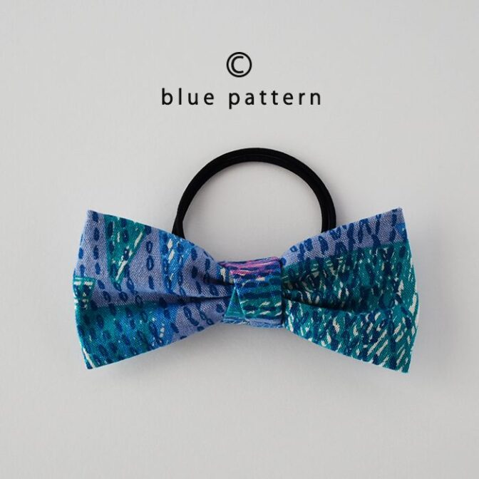 C (blue pattern):髪に映えるヴィヴィットなカラーのリボンはカジュアルなコーデネートの差し色に。